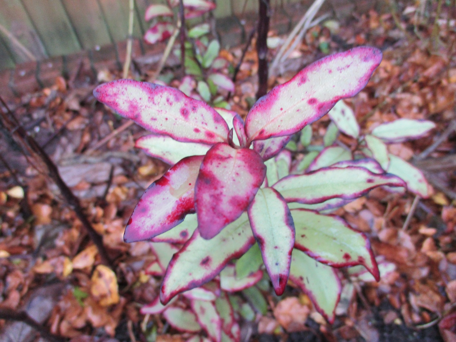 Photinia ‘Pink Marble’ has not got the room it needs to flourish, in summer it is jostled by salvias, dahlias and a euphorbia. At the moment it is getting a little breathing room and giving us the chance to appreciate it’s beauty.