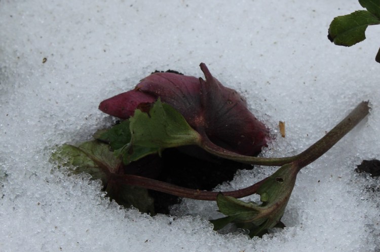 Next the hellebore of previous weeks’ SoS, face harshly pushed into the frozen ground, crushed. Like my heart.