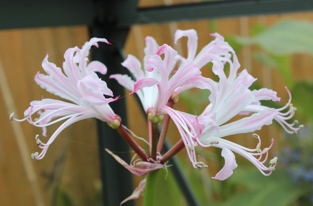 First we have Correa backhousiana which has been hiding its light under a bushel, quite literally, for the summer months. Not that it is complaining, this year it seems to have settled nicely into its home and has rewarded us with a plethora of its palest yellow blooms.